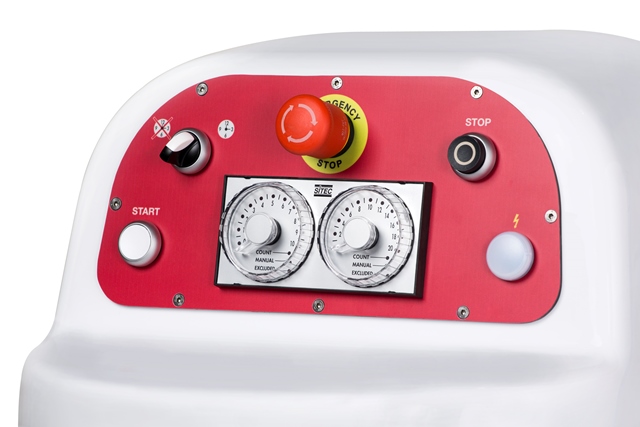 El panel de mandos está compuesto de un doble temporizador electromecánico que permite trabajar en tres modalidadades diferentes :manual, semiautomática y automática; en caso de rotura del temporizador se puede excludir el temporizador y seguir trabajando hasta la sustitución del mismo.